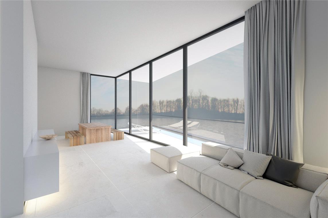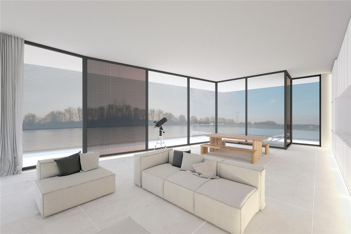 De woonfuncties werden allemaal naar het water gericht. Dit is ook de optimale zonzijde. De ganse dag door.